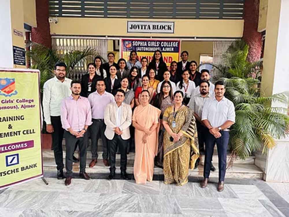 सोफिया कॉलेज अजमेर ने एक बार फिर से अपने छात्राओं की बेहतरीन प्रतिभा और कॉलेज की उच्च शैक्षणिक गुणवत्ता का प्रमाण दिया है। इस साल कॉलेज की 15 छात्राओं का चयन प्रतिष्ठित अंतरराष्ट्रीय वित्तीय संस्थान डॉयचे बैंक में हुआ है। जहां उन्हें 5.5 लाख रुपये प्रति वर्ष का प्रारंभिक पैकेज ऑफर किया गया है। बतौर फ्रेशर यह एक शानदार उपलब्धि है, जो छात्राओं की कड़ी मेहनत और कॉलेज के उत्कृष्ट मार्गदर्शन को दर्शाती है।