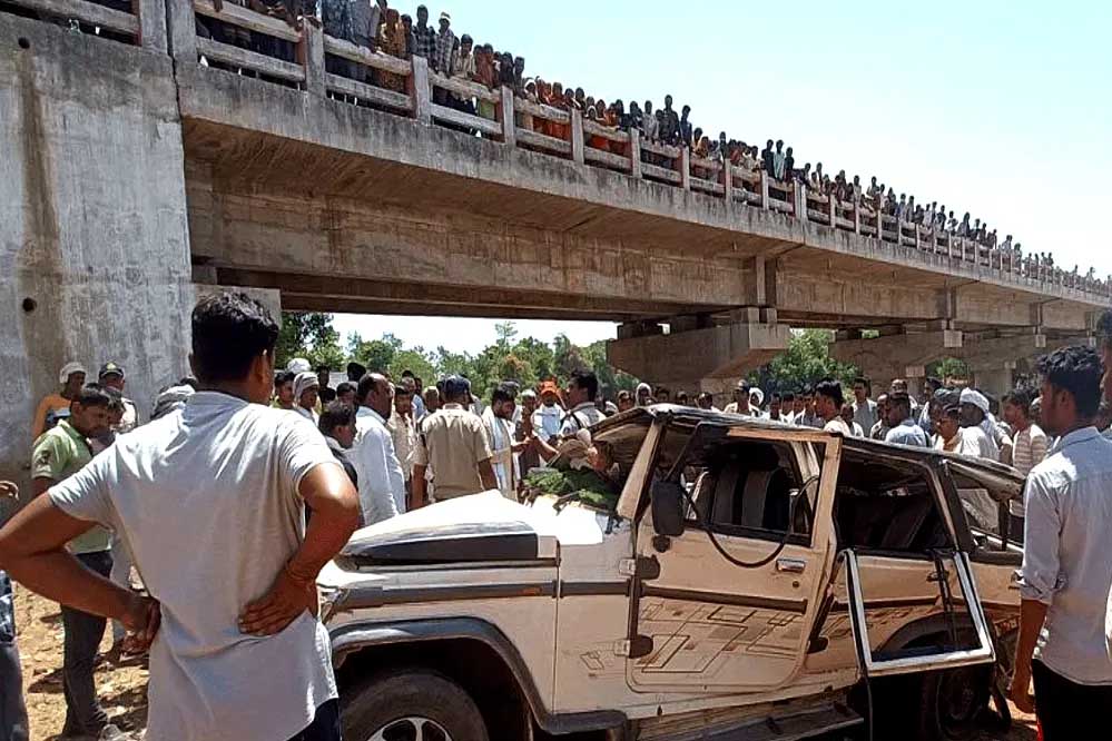 दमोह जिले के नोहटा थाना क्षेत्र अंतर्गत बनवार चौकी के समीप महादेव पुल घाट के पास ये हादसा हुआ है। बताया जा रहा है कि, तेज रफ्तार दौड़ती बेलोरो जीप अनियंत्रित होकर पलटी, फिर पुल से नीचे आ गिरी, जिससे जीप सवार करीब 6 से 7 लोगों की घटनास्थल पर ही मौत हो गई। जबकि, इतने ही लोग गंभीर रूप से घायल हुए है। स्थानीय लोगों का कहना है कि, वाहन तेज गति से आ रहा था, जिसे बोलेरो वाहन चालक पुल पर नियंत्रित नहीं कर सका और वाहन पुल से नीचे सूखी नदी में आ गिरा। हादसे की भीषणता का अंदाजा इसी से लगा सकते हैं कि पुल से नीचे गिरी बोलेरो जीप पूरी तरह से चकनातूर हो गई है।