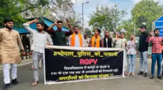 RGPV : घोटाले के आरोपियों की गिरफ्तारी की मांग को लेकर ABVP का सीएम हाउस के बाहर प्रदर्शन