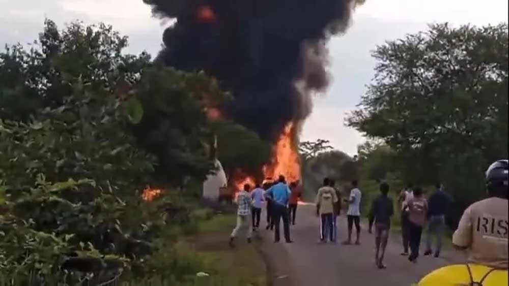 जिले के सेमरिया गांव में शनिवार को एक बड़ा हादसा हो गया। जहां पेट्रोल से भरा टैंकर अनियंत्रित होकर सड़क किनारे पलट गया, जिसके बाद उसमें भीषण आग लग गई। देखते ही देखते पूरा टैंकर आग की लपटों में घिर गया और जोरदार ब्लास्ट हो गया। घटना के बाद आसपास के इलाके में अफरा-तफरी का माहौल बन गया। घटना पलारी थाना क्षेत्र की है।