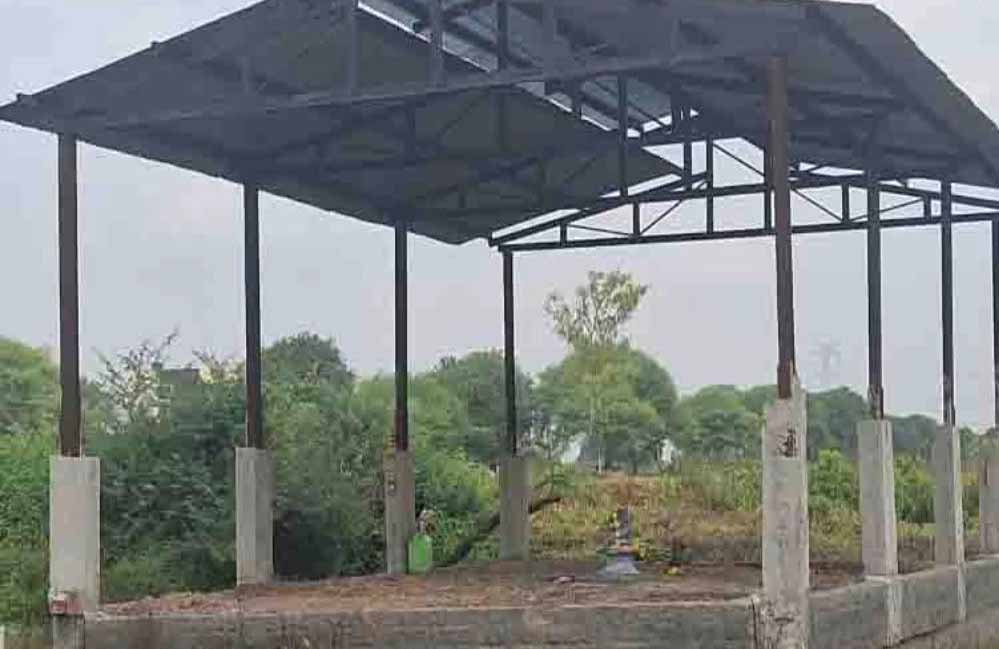 उक्त भूमि पर हाईकोर्ट का स्टे आर्डर है। इस भूमि पर निर्माण कार्य पर रोक लगी हुई है। सरपंच ने बताया कि रविवार-सोमवार की दरमियानी रात अज्ञात लोगों ने श्मशान घाट के शेड के नीचे शिवलिंग स्थापित कर दिया।