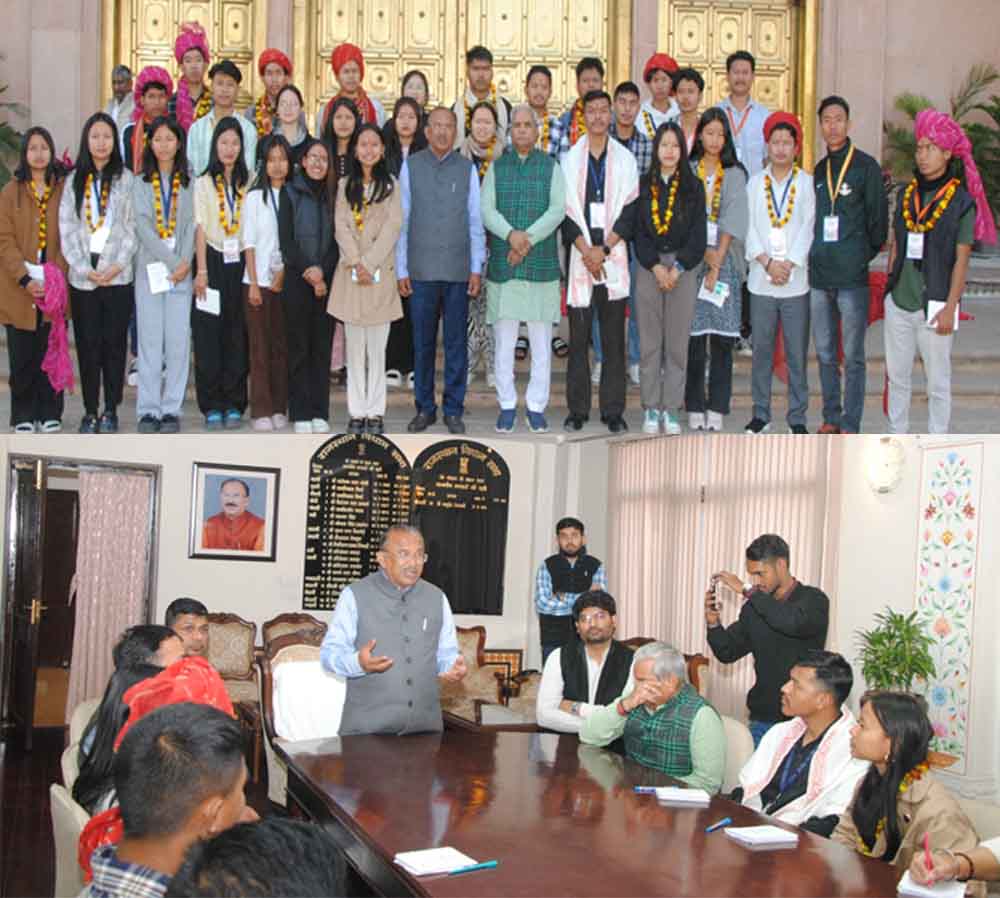 राजस्थान विधानसभा अध्यक्ष वासुदेव देवनानी से बुधवार को पूर्वोत्तर के सात राज्यों मणिपुर, नागालैण्ड, असम, सिक्किम, मेघालय, अरुणाचल प्रदेश और त्रिपुरा के तीस विद्यार्थियों के प्रतिनिधि मंडल ने स्टूडेन्टस एक्सपीरियन्स इन्टर स्टेट लिविंग प्रोग्राम के तहत शिष्टाचार भेंट की।