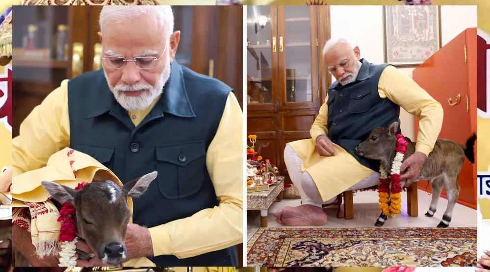 प्रधानमंत्री नरेंद्र मोदी ने अपने एक्स हैंडल पर एक वीडियो पोस्ट किया है और देखते ही देखते यह वीडियो वायरल हो गया. वीडियो में प्रधानमंत्री अपने आवास पर एक गाय के बछड़े (नव वत्सा) के साथ दिख रहे हैं.प्रधानमंत्री ने बताया कि इस बछड़े का नाम उन्होंने ‘दीपज्योति’ रखा है.