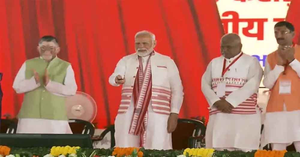 प्रधानमंत्री नरेंद्र मोदी ने गांधी जयंती पर बुधवार को झारखंड के हजारीबाग की धरती से जनजातीय समुदाय के विकास से जुड़ी 83 हजार करोड़ से अधिक की परियोजनाओं का लोकार्पण-शिलान्यास किया। यहां विनोबा भावे विश्वविद्यालय परिसर में आयोजित एक कार्यक्रम में उन्होंने अपने संबोधन की शुरुआत ‘जोहार’ से की।
