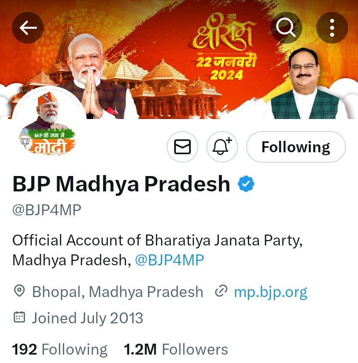 दरअसल, मध्य प्रदेश बीजेपी के ऑफीशियल X हैंडल के कवर पेज में बदलाव हुआ है. इसे मध्य प्रदेश बीजेपी में परिवर्तन के संकेत के तौर पर देखा जा रहा है. पहले जहां कवर पेज पर बीजेपी के प्रदेश अध्यक्ष वीडी शर्मा और सीएम शिवराज सिंह चौहान की तस्वीरें थीं, वहीं अब इसे बदल दिया गया है. अब बीजेपी के X हैंडल के कवर पेज पर पीएम नरेंद्र मोदी और जेपी नड्डा की फोटो है, साथ में राम मंदिर है, जिसकी वजह से ऐसी खबरें सामने आ रही हैं।