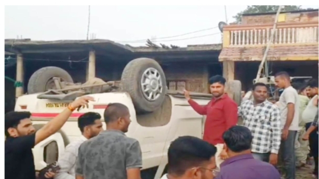 देवास। मेंढकी रोड पर रविवार दोपहर संयुक्त कलेक्टर लिखी पट्टिका लगी बोलेरो कार पलट गई। हादसे के तुरंत बाद कार में सवार चार लोग मौके से गायब हो गए।