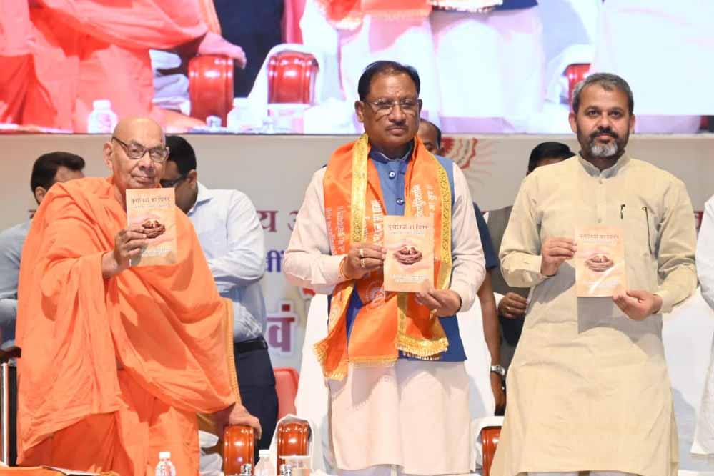 मुख्यमंत्री विष्णु देव साय और गुजरात के राज्यपाल आचार्य देवव्रत आज राजधानी रायपुर के डीडीयू ऑडिटोरियम में महर्षि दयानंद सरस्वती जी की 200वीं जयंती और आर्य समाज के 150वें स्थापना वर्ष के शुभ अवसर पर आयोजित धर्मरक्षा महायज्ञ एवं वैदिक सनातन संस्कृति सम्मेलन में शामिल हुए। मुख्यमंत्री साय ने इस दौरान धर्मरक्षा यज्ञ में हवन-पूजन कर प्रदेश कल्याण की कामना की। इस अवसर पर मुख्यमंत्री साय और राज्यपाल आचार्य देवव्रत ने छत्तीसगढ़ प्रांतीय आर्य प्रतिनिधि सभा द्वारा तैयार पुस्तिका “चुनौतियों का चिंतन” का विमोचन किया।