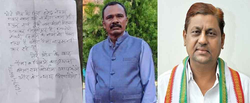 जानिए मामला आपको बता दें कि हेडमास्टर देवेंद्र कुमार ठाकुर ने घर में फांसी लगाकर आत्महत्या की थी जो कि डौंडी विकास खण्ड के ओड़गाँव स्कूल में हेडमास्टर के पद पर पदस्थ था मृतक देवेंद्र कुमेटी पुलिस ने मौके से सुसाइड नोट किया बरामद सुसाइड नोट में अपनी मौत का जिम्मेदार चार लोगों को ठहराया था और नौकरी के नाम पर लाखों रुपए की ठगी करने की बाते सुसाइड नोट में कही थी नौकरी लगाने के नाम पर लाखों रुपए का लेनदेन होने की बाते सामने आ रही थी प्रारंभिक जांच के बाद अब मामला दर्ज कर लिया गया है।