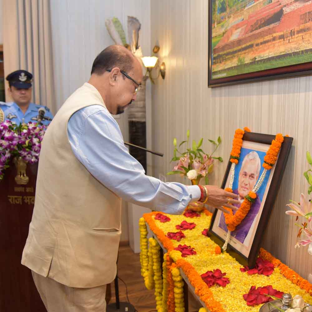 डेका ने 1978-79 में उनके असम दौरे के संबंध में स्मृतियां साझा की। राज्यपाल श्री डेका ने भारत को विश्व पटल पर स्थापित करने के लिए श्री बाजपेयी के योगदान का उल्लेख करतेे हुए कहा कि विदेश एवं अंतर्राष्ट्रीय मंचो पर भारत का मजबूती से पक्ष रखकर उन्होंने देश का मान बढ़ाया। भारत को जब कमजोर देश समझा जाता था, तब पोखरण में परमाणु परीक्षण कर उन्होंने भारत को परमाणु शक्ति सम्पन्न देश घोषित किया। इस कदम से उन्होंने भारत को विश्व में एक सुदृढ़ वैश्विक शक्ति के रूप में स्थापित कर दिया। राज्यपाल ने श्री वाजपेयी के प्रधानमंत्री के कार्यकाल को अभूतपूर्व बताया। इस अवसर पर राज्यपाल के सचिव श्री यशवंत कुमार, विधिक सलाहकार श्री भीष्म प्रसाद पाण्डेय, एवं राजभवन के अन्य अधिकारियों एवं कर्मचारियों ने भी पुष्पाजंलि अर्पित की।