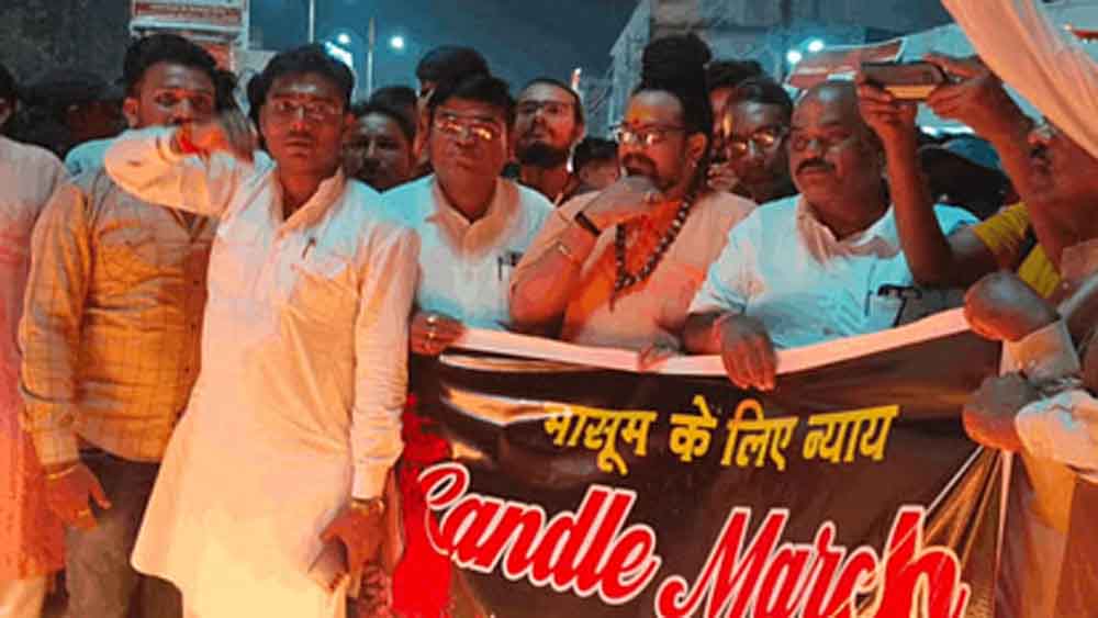 सोमवार की शाम 6.30 बजे नेता जी चौक और कचहरी चौक तक कैंडल मार्च निकाला। गौरतलब है कि सिटी कोतवाली क्षेत्र में एक मासूम बच्ची के साथ दुष्कर्म कर झाड़ियों में फेक दिया था। परिजनों ने सिटी कोतवाली थाने में एफआईआर दर्ज कराई थी और 12 घंटे के भीतर पुलिस ने आरोपी को पकड़ा था। जोकि सौतेला पिता ही मासूम के साथ दुष्कर्म किया था। शहर के लोगों में इस घटना को लेकर भारी आक्रोश था। जिससे लेकर विधायक व्यास कश्यप और बड़ी संख्या में शहर के लोगो ने कैंडल मार्च निकाली और वी फॉर जस्टिस के नारे के साथ पैदल चलकर कचहरी चौक में आरोपी को फांसी की सजा देने की मांग रखी है।