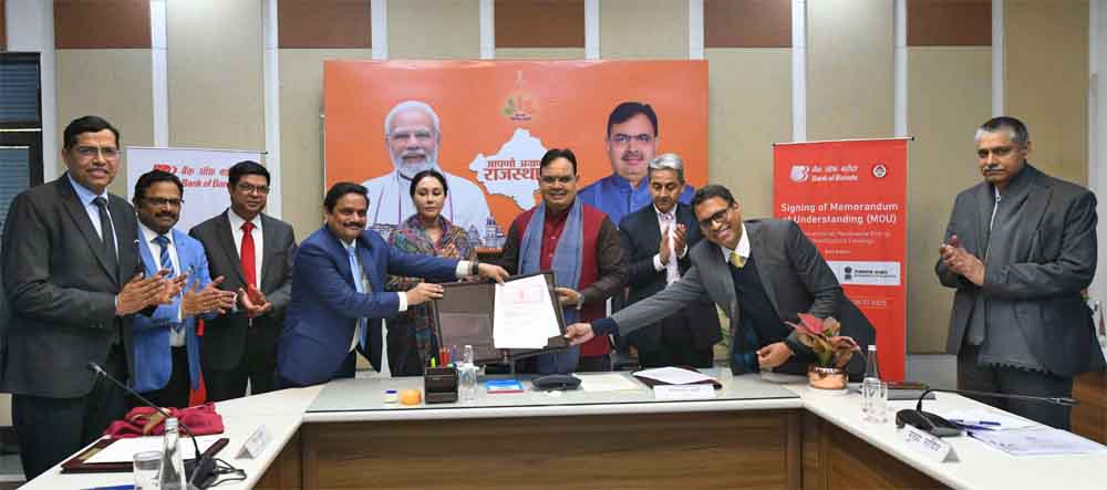 श्री शर्मा ने कहा कि प्रधानमंत्री श्री नरेंद्र मोदी जी के अनुसार बेहतर कल के लिए हमें आज सुदृढ़ बुनियादी ढांचे में निवेश करना चाहिए। प्रधानमंत्री जी की इस सीख को आत्मसात करते हुए हम प्रदेश के बुनियादी ढांचे को सुदृढ़ कर रहे हैं। हमने नवीकरणीय ऊर्जा की उत्पादन क्षमता 2029-30 तक बढ़ाकर 125 गीगावाट करने का लक्ष्य रखा है। उन्होंने कहा कि राज्य सरकार ने 5 साल के इस कार्यकाल में 53 हजार किलोमीटर का सड़क नेटवर्क तैयार करने के लिए 60 हजार करोड़ रूपये व्यय करने का संकल्प लिया है। मुख्यमंत्री ने कहा कि राइजिंग राजस्थान ग्लोबल इन्वेस्टमेंट समिट में भी हमने प्रदेश के विकास के लिए 35 लाख करोड़ के एमओयू किए हैं। बिजली और नवीकरणीय ऊर्जा के माध्यम से हर घर को रोशन करना, हर नागरिक को स्वच्छ पेयजल उपलब्ध कराना और ग्रामीण व शहरी सड़कों को बेहतर बनाना हमारा प्राथमिक उद्देश्य है। शर्मा ने कहा कि राजस्थान सरकार अपनी योजनाओं को प्रभावी ढंग से लागू करने के लिए पूरी तरह प्रतिबद्ध है। आज की साझेदारी राज्य के विकास और जनकल्याण की दिशा में नए आयाम स्थापित करेगी तथा विकसित भारत 2047 एवं विकसित राजस्थान 2047 की दिशा में महत्वपूर्ण कदम साबित होगी। उपमुख्यमंत्री (वित्त) दिया कुमारी ने कहा कि मुख्यमंत्री श्री भजनलाल शर्मा की दूरगामी सोच के अनुरूप राज्य सरकार प्रदेश के बुनियादी ढांचे में भारी निवेश की परिकल्पना के साथ कार्य कर रही हैं। दोनों बैंक के साथ सम्पन्न एमओयू राज्य के बुनियादी ढांचे को सुदृढ़ करने में भागीरथी प्रयास है। उन्होंने कहा कि इस कदम से केंद्र और राज्य सरकार के जन हित के लक्ष्य को प्राप्त किया जा सकेगा और विकसित राजस्थान का संकल्प साकार होगा। इस अवसर पर मुख्य सचिव श्री सुधांश पंत, अतिरिक्त मुख्य सचिव वित्त श्री अखिल अरोड़ा, अतिरिक्त मुख्य सचिव (मुख्यमंत्री) श्री शिखर अग्रवाल, प्रमुख सचिव (मुख्यमंत्री) श्री आलोक गुप्ता, प्रमुख शासन सचिव वित्त (बजट) श्री देबाशीष पृष्टी, बैंक ऑफ बड़ौदा के एमडी एवं सीईओ श्री देबदत्त चंद, कार्यकारी निदेशक श्री ललित त्यागी, बैंक ऑफ महाराष्ट्र के कार्यकारी निदेशक श्री रोहित ऋषि सहित दोनो बैंकों के वरिष्ठ अधिकारीगण उपस्थित थे।