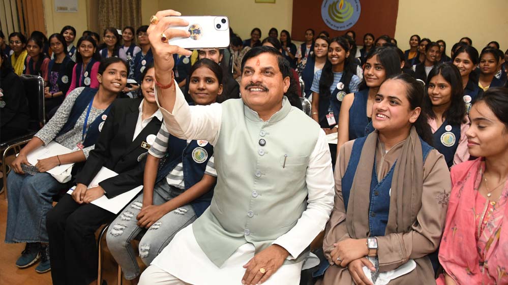 मुख्यमंत्री डॉ. यादव ने कॉलेज के फैशन टेक्नोलॉजी डिपार्टमेंट की छात्राओं से उनके क्लासरूम में ‘सीएम की पाठशाला’ लगाई और सभी बेटियों से गुरूतुल्य व पितातुल्य संवाद किया। मुख्यमंत्री ने छात्राओं को मध्यप्रदेश की महारानी दुर्गावती और लोकमाता देवी अहिल्याबाई के सम्पूर्ण जीवन वृतांत पर रोचकतापूर्वक प्रकाश डालकर छात्राओं का ज्ञान संवर्धन किया। मुख्यमंत्री डॉ. यादव ने छात्राओं के आल्हाद में सहभागी बनकर उनके साथ सेल्फी भी ली।