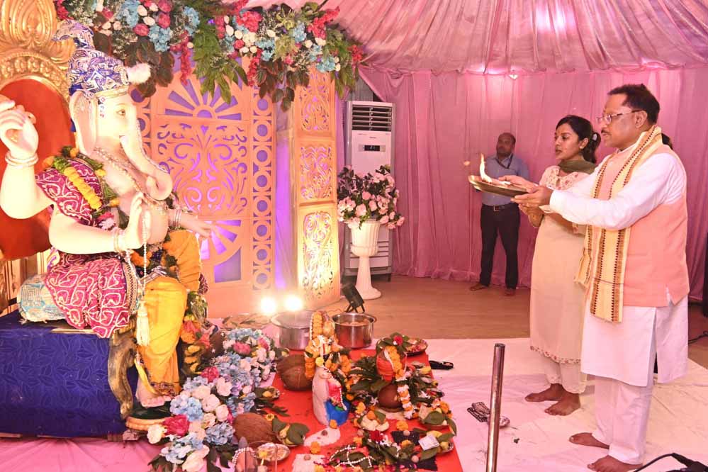 मुख्यमंत्री श्री विष्णु देव साय ने आज यहां अपने निवास में विराजे भगवान श्री गणेश का पूरे विधि-विधान से पूजन-हवन किया और प्रदेशवासियों की सुख-समृध्दि की कामना की। मुख्यमंत्री श्री साय ने सभी प्रदेशवासियों को अंनत चतुर्दशी की बधाई एवं शुभकामनाएं दीं। इस अवसर पर मुख्यमंत्री श्री साय के परिवारजन व अधिकारी-कर्मचारीगण उपस्थित थे।