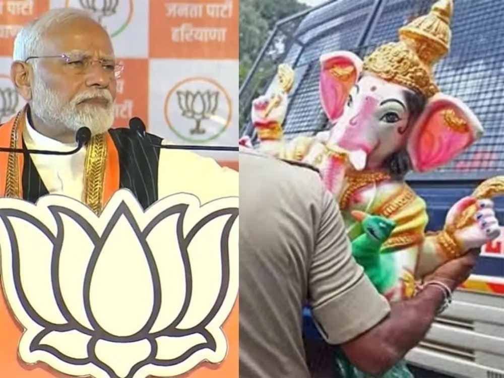 उल्लेखनीय है कि, बेंगलुरु में गणेश उत्सव के दौरान पुलिस ने बिना अनुमति प्रदर्शन करने के आरोप में 40 श्रद्धालुओं को गिरफ्तार किया था। यह विरोध प्रदर्शन बेंगलुरु महानगर गणेश उत्सव समिति द्वारा किया जा रहा था। इस दौरान पुलिस ने प्रदर्शनकारियों से भगवान गणेश की मूर्ति छीन कर उसे पुलिस वैन में रख लिया था। प्रधानमंत्री मोदी ने कहा कि कांग्रेस ने देश को बर्बाद करने का काम किया है। कांग्रेस की सरकार में भ्रष्टाचार और अपराध बढ़े हैं। उन्होंने कहा कि कांग्रेस आर्टिकल 370 को फिर से बहाल करने का समर्थन कर रही है। यानी, कुछ साल पहले तक, वहां हरियाणा के हमारे वीर सैनिकों पर जो पत्थर चलते थे, कांग्रेस उस दौर को वापस लाना चाहती है। कांग्रेस आतंक और अलगाव के उस कालखंड को वापस लौटाना चाहती है।