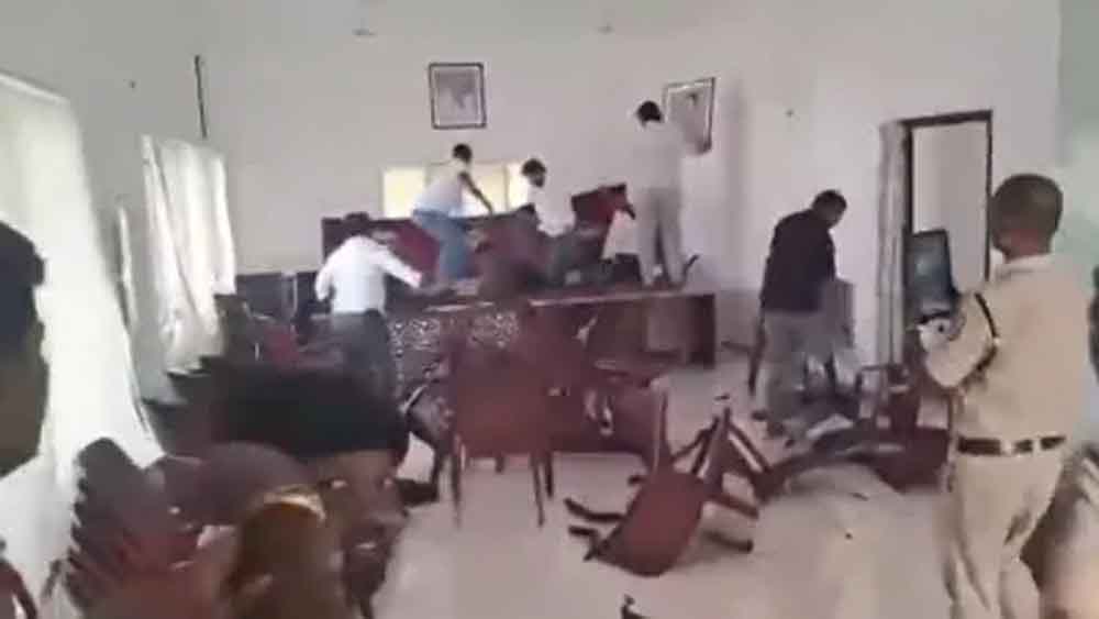 तेलंगाना के भोंगीर में कांग्रेस कार्यकर्ताओं ने विपक्षी भारतीय राष्ट्रीय समिति (बीआरएस) के कार्यालय में तोड़फोड़ की। यह घटना तब हुई जब बीआरएस नेता रामकृष्ण रेड्डी ने हैदराबाद में प्रेस कॉन्फ्रेंस के दौरान मुख्यमंत्री ए रेवंत रेड्डी के खिलाफ अपमानजनक टिप्पणी की।