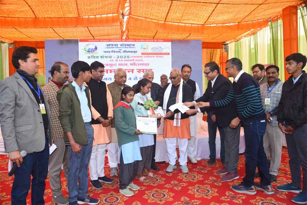 समापन समारोह को संबोधित करते हुए पर्यावरण संरक्षण गतिविधि के राष्ट्रीय सह संयोजक श्री राकेश जैन ने कहा कि पर्यावरण संरक्षण गतिविधि का कार्य 10 मार्च 2019 से शुरू किया गया। उस वक्त प्रति व्यक्ति पेड़ की संख्या 28 थी जो आज भी प्रति व्यक्ति 29 ही हुए है। अन्य देशों की तुलना में आज भी पेड़ों की संख्या भारत में कम है। जल, जंगल, जमीन, जानवर और जन संकट में है। विधायक अशोक कोठारी ने कहा कि अमृता देवी ने पेड़ों को बचाने के लिए सर्वस्व बलिदान कर दिया उनसे हमे प्रेरणा लेने की जरूरत है। समारोह में महापौर राकेश पाठक ने कहा कि अपना संस्थान ने शहर में पर्यावरण और स्वच्छता को लेकर नैतिक परिवर्तन का काम किया है। नगर निगम भी लगातार इस क्षेत्र में प्रयास कर रहा है। प्रदेश में भीलवाड़ा पहला ऐसा शहर है जो यूज पानी को एसटीपी प्लांट से 20 से 30 प्रतिशत रियुज कर रहा है। इस अवसर पर बाईसाइकिल मेन ऑफ इंडिया नीरज प्रजापति, अपना संस्थान सचिव व मेला सहसंयोजक साधना मेलाना सहित बड़ी संख्या में संस्थान पदाधिकारी एवं मेला प्रबंधन समिति उपस्थित रहे।