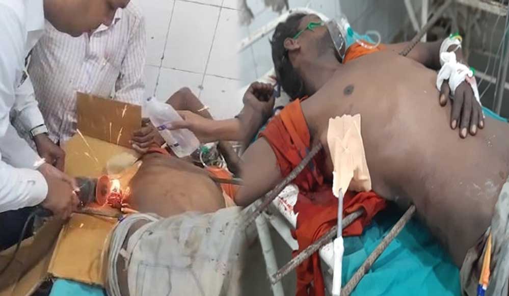 इस दर्दनाक घटना के बाद भी बिना घबराए मजदूर की जीवटता और डॉक्टरों के हाथों के हुनर ने ऐसा कमाल दिखाया कि त्योहार के दिन उसे जीवनदान मिल गया। अस्पताल ले जाए गए मजदूर के शरीर में सरिये घुसे होने से उसे सीटी स्कैन कक्ष तक में नहीं ले जाया सका तो ग्राइंडर से सरिये काटे गए।