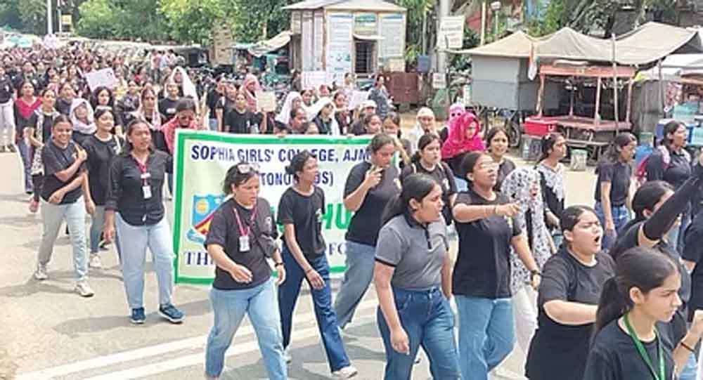 जिले में सोमवार को सोफिया गर्ल्स कॉलेज और स्कूल की 1000 से अधिक छात्राओं ने देश में महिलाओं पर हो रहे अत्याचारों व दुष्कर्म की बढ़ती वारदातों के विरोध में आज जयपुर रोड स्थित सोफिया कॉलेज के बाहर से रैली निकाली। इस दौरान जिला कलेक्टर कार्यालय के बाहर नुक्कड़ नाटक महिलाओं पर बढ़ रहे अत्याचार के विरोध में अपने गुस्से का इजहार किया।
