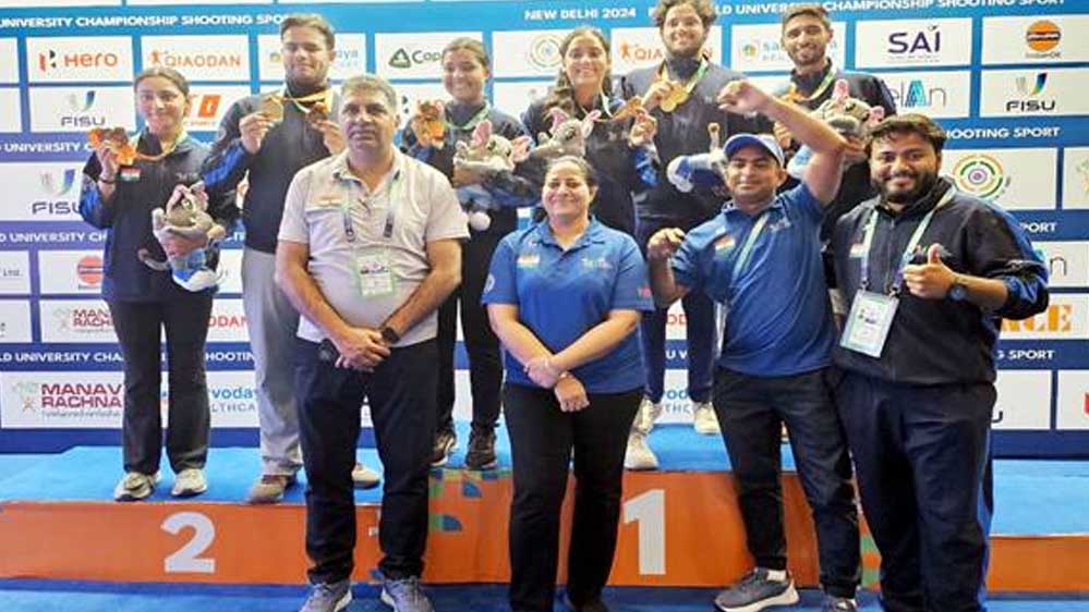 म.प्र. राज्य शूटिंग अकादमी के कुल 04 खिलाड़ियों ने विश्व यूनिवर्सिटी गेम्स 2024 में प्रतिभागिता की थी। सभी खिलाड़ियों ने पदक अर्जित किये है। यह विश्व शूटिंग चौम्पियनशिप में म.प्र.राज्य शूटिंग अकादमी के खिलाड़ियों का यह चौथा पदक है। प्रतियोगिता में 4-4 पदक अर्जित करने पर खेल मंत्री सारंग ने प्रसन्नता व्यक्त करते हुये कहा कि यह परिणाम विभाग द्वारा दिये जा रहे खिलाड़ियों को प्रोत्साहन और उनकी कड़ी मेहनत का प्रतिफल है। उन्होंने उम्मीद जताई हमारे खिलाड़ी इसी तरह विश्व स्तर पर प्रदेश और देश को गौरवान्वित करते रहेंगें।