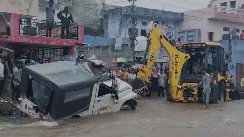 राजस्थान के बूंदी में मौसम विभाग ने रेड अलर्ट जारी किया है। जिले में भारी बारिश का सिलसिला अनवरत जारी है। इस बारिश के कारण जैत सागर झील उफान पर आ गई है, जिसके चलते प्रशासन ने झील के सभी गेट खोल दिए हैं। इस दौरान एक बड़ा हादसा होते-होते बच गया जब महावीर कॉलोनी में जैत सागर नाले की पुलिया को पार करते समय पुलिसकर्मियों से भरी जीप सैलाब में बह गई।