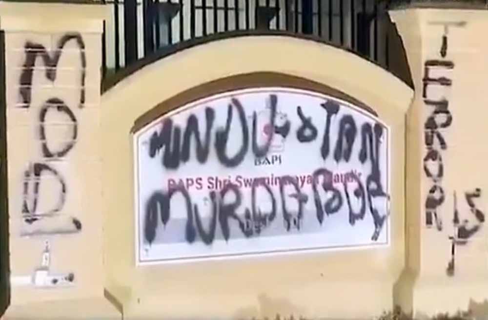 प्रधानमंत्री नरेंद्र मोदी के आगामी अमेरिकी दौरे से ठीक पहले न्यूयॉर्क के मेलविले स्थित BAPS स्वामीनारायण मंदिर में तोड़फोड़ और भारत विरोधी नारे लिखे जाने की घटना सामने आई है। इस घटना पर भारतीय वाणिज्य दूतावास ने कड़ी आपत्ति जताते हुए इसे “अस्वीकार्य” बताया है और अमेरिकी कानून प्रवर्तन एजेंसियों से त्वरित कार्रवाई की मांग की है। भारतीय वाणिज्य दूतावास ने सोशल मीडिया प्लेटफॉर्म ‘एक्स’ (पूर्व में ट्विटर) पर इस घटना की निंदा करते हुए कहा कि वह स्थानीय समुदाय के संपर्क में है और अमेरिकी कानून प्रवर्तन अधिकारियों के साथ मिलकर इस कृत्य के अपराधियों के खिलाफ कड़ी कार्रवाई सुनिश्चित करने की दिशा में काम कर रहा है।