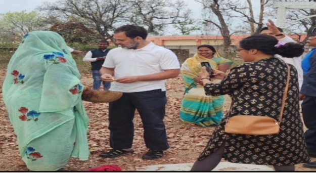 शहडोल से राहुल को हेलीकॉप्टर से जाना था। इसके बजाय उन्होंने सड़क मार्ग को चुना। सुबह पांच बजे शहडोल से रवाना होने के बाद उमरिया कलेक्टर कार्यालय के पास रास्ते में गाड़ी रुकवाई और महुआ बीन रही महिलाओं के बीच पहुंच गए। वहां उन्होंने उनसे चर्चा की। उन्होंने महुआ अपने हाथ से बीना और टोकरी में रखा। साथ ही साथ उनसे उनकी समस्या भी जानी। उन्होंने कांग्रेस को वोट डालने की अपील भी की। उन्होंने कहा कि अगर कांग्रेस की सरकार बनती है तो हम आपके हितों की रक्षा के लिए जरूर ठोस कदम उठाएंगे। आदिवासी महिला एवं पुरुषों के लिए हम हरसंभव प्रयास करेंगे।