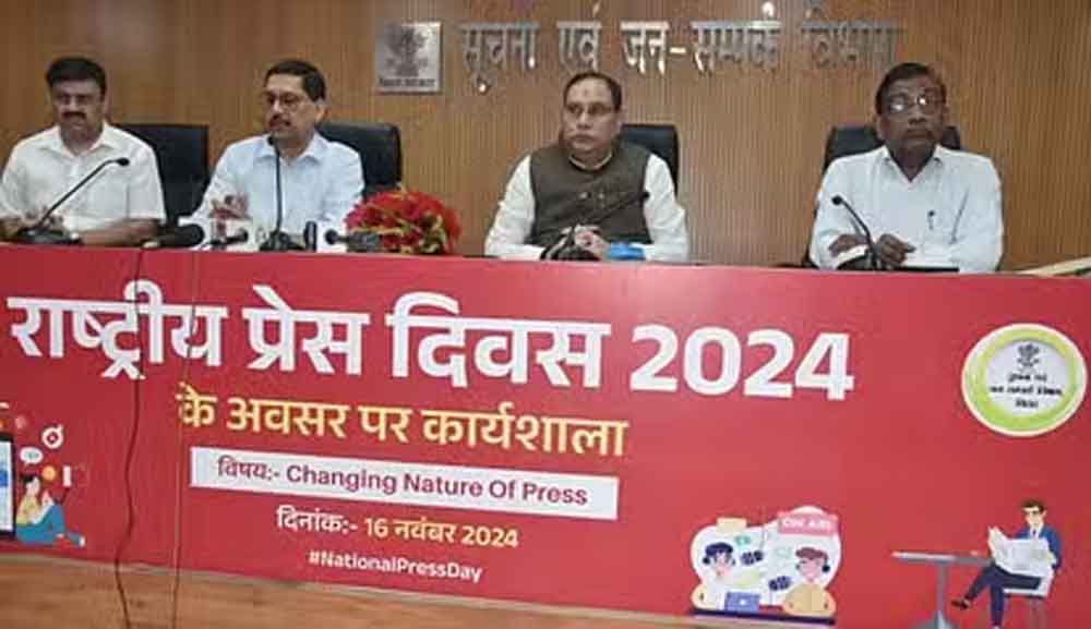 राष्ट्रीय प्रेस दिवस’ के अवसर पर सूचना एवं जन-सम्पर्क विभाग के मंत्री महेश्वर हजारी की अध्यक्षता में कार्यशाला का आयोजन किया गया। मंत्री ने कहा कि भारत का लोकतंत्र उसके चौथे स्तंभ अर्थात् प्रेस और मीडिया के बिना अधूरा है। राष्ट्रीय प्रेस दिवस केवल एक पर्व नहीं, बल्कि एक अवसर है, जब हम प्रेस की स्वतंत्रता, जिम्मेदारी और उसकी शक्ति का सम्मान करते हैं।