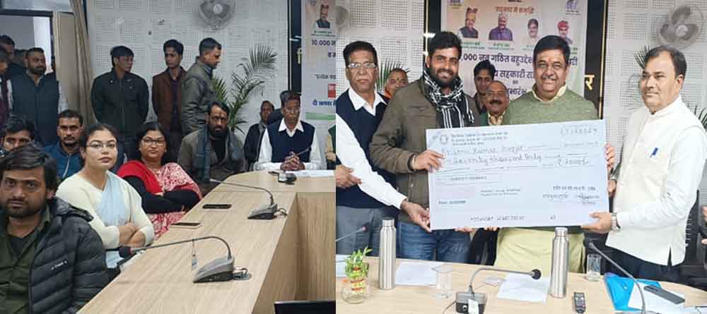 राज्यमंत्री श्री शर्मा ने अपने संबोधन में कहा कि देश में पहली बार केंद्र में सहकारिता विभाग का गठन किया गया है जिसका उद्देश्य सहकारिता के माध्यम से देश को उन्नति की ओर ले जाना है जिसमें खास तौर पर किसानों व पशुपालकों को सीधे तौर पर लाभ मिलने लगा है। उन्होंने कहा कि आज पूरे देश में एक साथ 10 हजार नवीन बहुउद्देशीय पैक्स, डेयरी व मत्स्य सहकारी समितियों का शुभारम्भ किया गया है जो कि ऐतिहासिक कार्य है। अलवर जिले में की घेवर बहुउद्देशीय सहकारी समिति को पंजीयन प्रमाण पत्रा सौंपा गया। जिला स्तर पर गोविन्दगढ की नवगठित एमपैक्स तालडा ग्राम सेवा सहकारी समिति तथा मुण्डावर की नवगठित गांधीनगर दुग्ध उत्पादन सहकारी समिति को पंजीयन प्रमाण पत्रा सौंपा गया। साथ ही गोपाल क्रेडिट कार्ड योजना के तहत दो ऋणी सदस्यों को स्वीकृत ऋण राशि का चेक सौंपा गया। पैक्स कंप्यूटराइजेशन योजना के तहत जिले की प्रथम दो ऑटोमेटेड ऑडिट करवाने वाली समितियों बांबोली और चीड़वा को ऑडिट रिपोर्ट सौंपी गई।