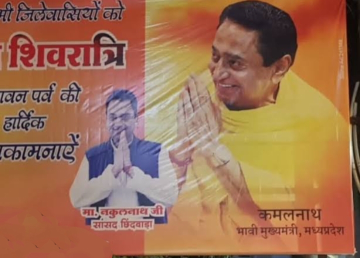 शिवरात्रि की शुभकामना वाले पोस्टर/होर्डिंग छिंदवाड़ा की सड़कों पर लगे हैं। इसमें कमलनाथ को भावी मुख्यमंत्री बताकर एक अलग ही सन्देश देने की कोशिश है। इससे कांग्रेस की गुटबाजी और बढ़ेगी।