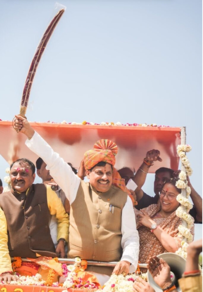 मुख्यमंत्री मोहन यादव एक बार फिर तलवारबाजी करते देखे गए भिंड में आयोजित एक रोड शो के दौरान तलवारबाजी में उनका दमदार प्रदर्शन रहा मोहन ने कार्यकर्ता से तलवार ली और हवा में लहराया घुमाया लोग सीएम के इस अद्भुत कौशल को देखकर दंग रह गए, इस दौरान मुख्यमंत्री ने रोड शो के बाद सहकारिता एवं किसान सम्मेलन में भाग लिए सम्मेलन में मुख्यमंत्री ने 1816 करोड रुपए की किसान कल्याण योजना की राशि सिंगल क्लिक के जरिए किसानों के खाते में डाली तथा विभिन्न घोषणाएं भी की।