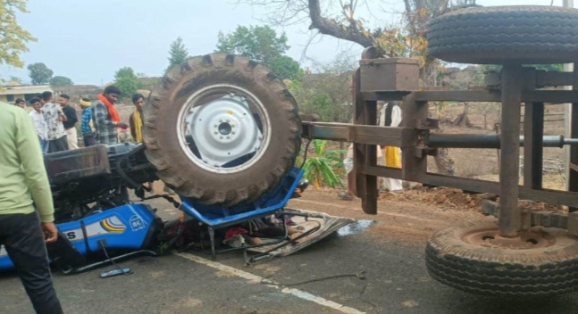 डिंडौरी। डिंडौरी जिले के करंजिया विकासखंड अंतर्गत ग्राम पंचायत बाहरपुर में सोमवार की दोपहर दर्दनाक हादसे में मौके पर ही दो लोगों की मौत हो गई। जानकारी के अनुसार भूसे से भरा एक ट्रैक्टर बहारपुर से गोपालपुर की ओर जा रहा था। तभी पंचायत भवन के पास बने पुल के करीब अनियंत्रित होकर पलट गया। जिसमें ऊपर बैठे दो लोगों की ट्रैक्टर के नीचे दबने से मौके पर ही मौत हो गई। एक व्यक्ति गंभीर रूप से घायल हो गया। बताया गया कि ट्रैक्टर पलटने से पहले एक व्यक्ति बस से भी टकराया था।
