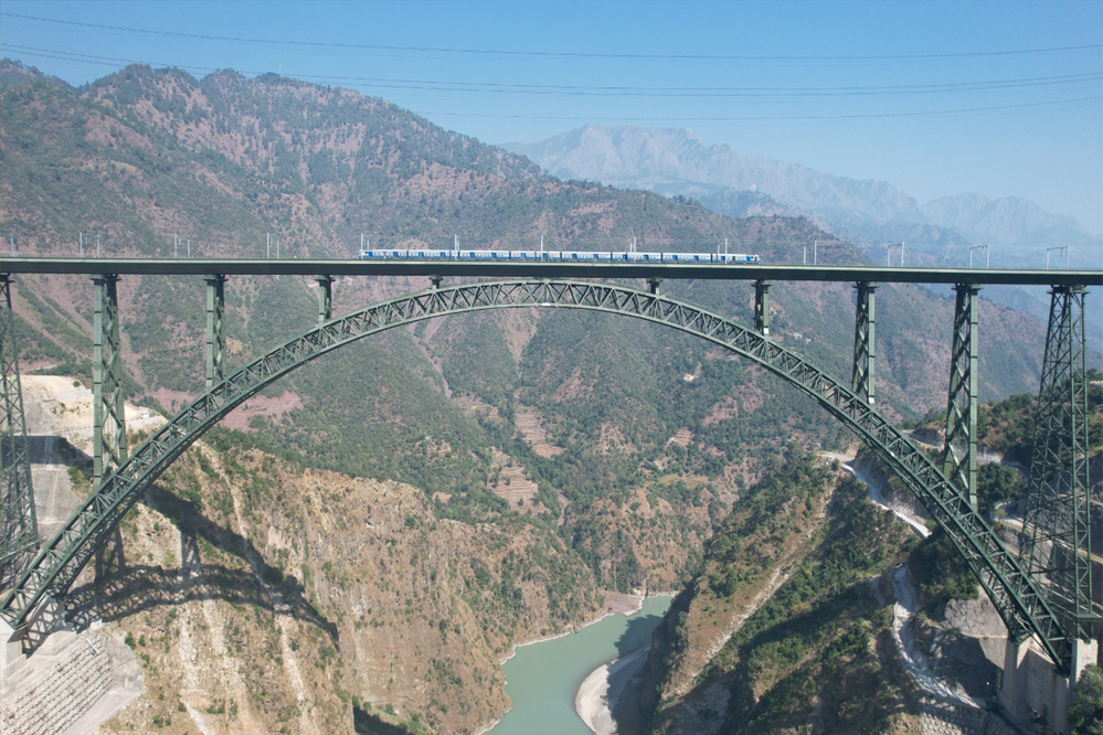 जहां बर्फ से ढके पहाड़ आसमान को छूते हैं और चिनाब नदी धरती को गहराई तक काटती है, वहीं भारत ने इस कठिन भूभाग में अपनी दृढ़ इच्छाशक्ति को इस्पात में ढाल दिया है। चिनाब पुल — अब विश्व का सबसे ऊँचा रेलवे पुल — नदी तल से 359 मीटर की ऊँचाई पर स्थित है, जो भारतीय इंजीनियरिंग कौशल और राष्ट्रीय संकल्प का प्रतीक बन चुका है।