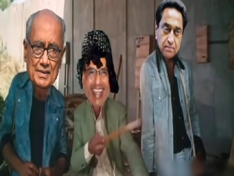 मध्य प्रदेश विधानसभा चुनाव 2023 से पहले इस ‘सियासी शोले’ फिल्म का एक सीन अब सोशल मीडिया पर वायरल हो रहा है। ये दरअसल एक एडिटेड वीडियो है जिसमें जय वीरू और सूरमा भोपाली तीनों साथ हैं। यहां सूरमा भोपाली हमेशा की तरह अपनी हांकने वाली आदत के मुताबिक बता रहा है कि कैसे जय-वीरू ने उसके पैर पकड़ लिए। ये फिल्म का एक मशहूर कॉमेडी सीन है जो बहुत हिट हुआ था। इस सीन में अब किरदारों के चेहरे बदल दिए गए हैं। दरअसल जय और वीरू के चेहरे पर एडिटिंग से दिग्विजय सिंह और कमलनाथ का चेहरा लगा दिया गया है, वहीं सूरमा भोपाली को सीएम शिवराज सिंह चौहान का चेहरा दिया गया है। और इस तरह एडिटेड वीडियो में सीएम शिवराज सिंह चौहान पर तंज कसा गया है। फिलहाल मध्य प्रदेश की चुनावी मौसम में इसी तरह के कई फिल्मी सीन देखने को मिल रहे हैं।