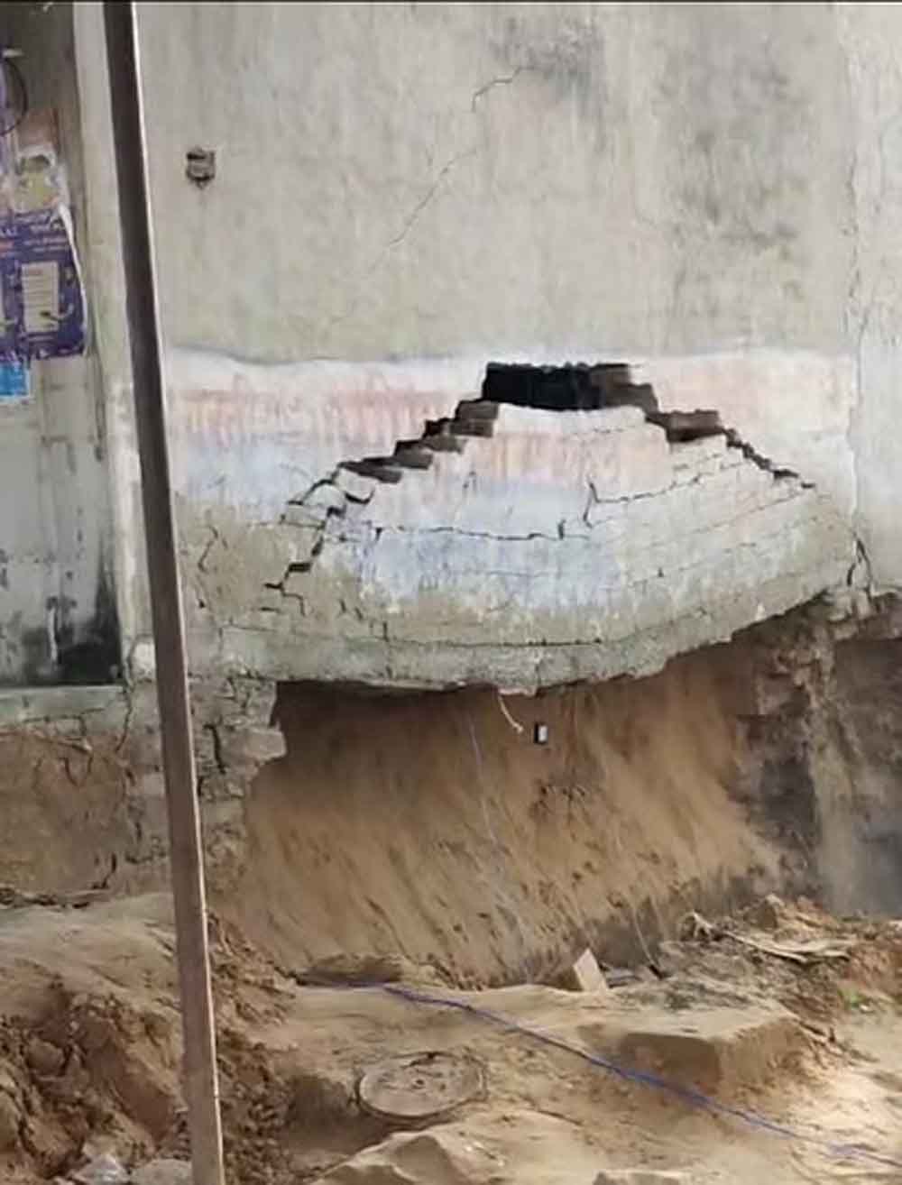 जानकारी के अनुसार चौफुलिया में सुमेर गुर्जर ताल बुरका ने 25 साल पहले दो मंजिला दुकान बनाई थी, जिससे मनोहर लाल सैनी नेवरी ने किराए पर लेकर इलेक्ट्रॉनिक कि दुकान कर रखी थी। दुकान के पास ही बराबर में शीशराम सैनी पौख ने जमीन खरीद कर बेसमेंट खोदकर शनिवार को ही काम चालू किया था। बेसमेंट की खुदाई के बाद चार पांच मजदूर व मिस्त्री बेसमेंट में काम कर रहे थे। सायं 4 बजे करीब दो मंजिला दुकान भर भरा कर बेसमेंट 10 फीट के खड्डे में गिर गई।