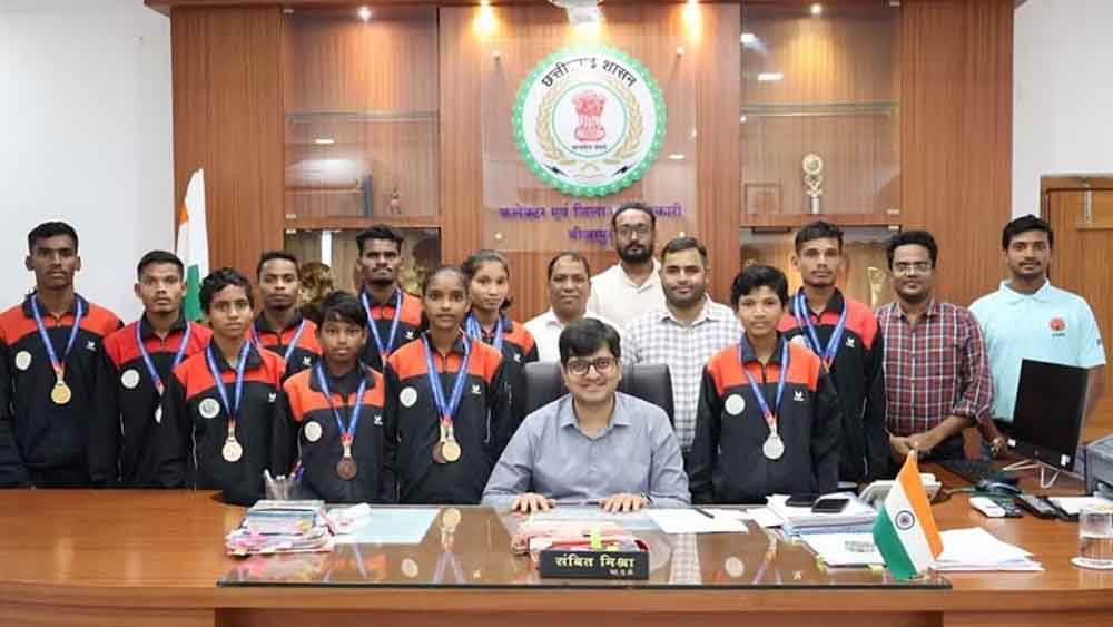 जिसमें अंजली कारम ट्रायथलॉन सी 60 मीटर लंबी कूद। 600 मीटर गोल्ड मेडल, संतोषी भंडारी 60 मीटर लंबी कूद। 600 मीटर सिल्वर मेडल, रुक्मणी लेकाम 60मी. लंबी कूद . गोला फेंक ब्रांज मेडल, वीरेंद्र ध्रुव ट्रायथलॉन सी 60मी. लंबी कूद। 600मी. गोल्ड मेडल, पूजा वाचम 600 मीटर सिल्वर मेडल, 60 मीटर ब्रांज मेडल, प्रियंका कुड़ियां पेंटाथलॉन 80 मी. बाधा दौड़, 600 मीटर दौड़, 60 मीटर दौड़, लंबी कूद। गोला फेंक ब्रांज मैडल, राजू पोयम ऊंची कूद सिल्वर मैडल, प्रियंका एवं साथी मिडिल रिले स्वर्ण पदक तथा, पिलू एवं साथी मिडिल रिले सिल्वर मेडल जीते। ये सभी खिलाड़ी दिनांक चार अक्तूबर से छह अक्तूबर 2024 को विश्व विद्यालय स्पोर्ट्स कॉम्प्लेक्स नागपुर महाराष्ट्र में होने वाले 35वीं वेस्ट जोन जूनियर एथलेटिक्स चैंपियनशिप में छत्तीसगढ़ राज्य का प्रतिनिधित्व करेंगे। इस उपलब्धि पर जिले के कलेक्टर संबित मिश्रा एवं जिला पंचायत सीईओ हेमंत रमेश नंदनवार एवं प्रभारी खेल अधिकारी नारायण प्रसाद गवेल ने सभी खिलाड़ियों को बधाइयां देते हुए उनके उज्जवल भविष्य की कामना की साथ में एकलव्य बीजापुर के प्रिंसिपल अनिल मिश्रा, एथलेटिक्स टीम के कोच संदीप गुप्ता एवं श्रम निरीक्षक तथा अंतर्राष्ट्रीय कोच सोपान कर्णेवार उपस्थित रहे।