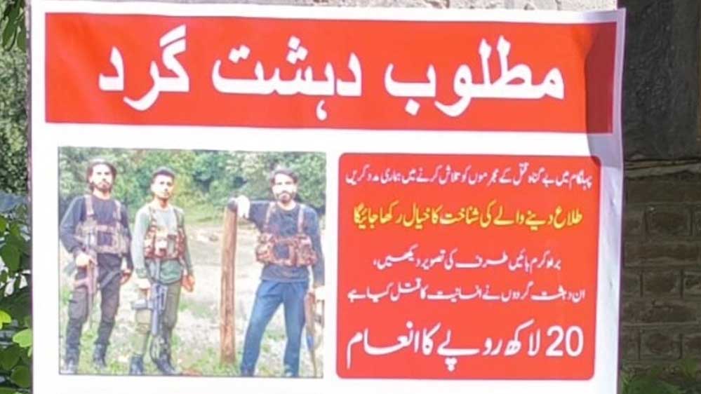 पिछले महीने जम्मू-कश्मीर के पहलगाम में हुए आतंकी हमले करने वाले गुनहगारों को अभी तक पकड़ा नहीं जा सका है. अब सुरक्षा एजेंसियों ने पहलगाम हत्याकांड के लिए जिम्मेदार तीन पाकिस्तानी आतंकवादियों के पोस्टर जारी किए हैं. शोपियां जिले के कई इलाकों में पोस्टर लगाए गए हैं. पहलगाम आतंकी हमले में शामिल लोगों की जानकारी देने वाले को 20 लाख का इनाम देने का ऐलान किया गया है. इसके साथ ही यह भी कहा गया है कि हमलावरों के बारे में जानकारी देने वालों की पहचान को गुप्त रखा जाएगा.