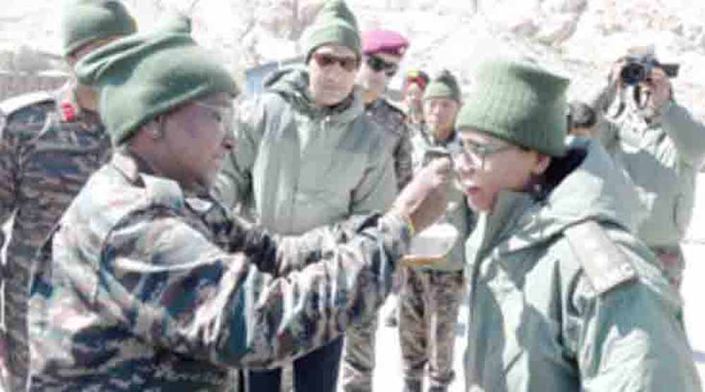 राष्ट्रपति ने कहा, “आप सभी जवानों और अधिकारियों से यहां आकर मिलने की मेरी इच्छा आज पूरी हो रही है। मैं आप सबसे मिलकर बेहद खुशी का अनुभव कर रही हूं। तीनों सेनाओं की सर्वोच्च कमांडर के रूप में मुझे आप सभी पर विशेष गर्व का अनुभव हो रहा है। सभी देशवासी, आप सब की बहादुरी को सलाम करते हैं। मैं सभी देशवासियों की ओर से आप सबके लिए विशेष सम्मान व्यक्त करती हूं।”
