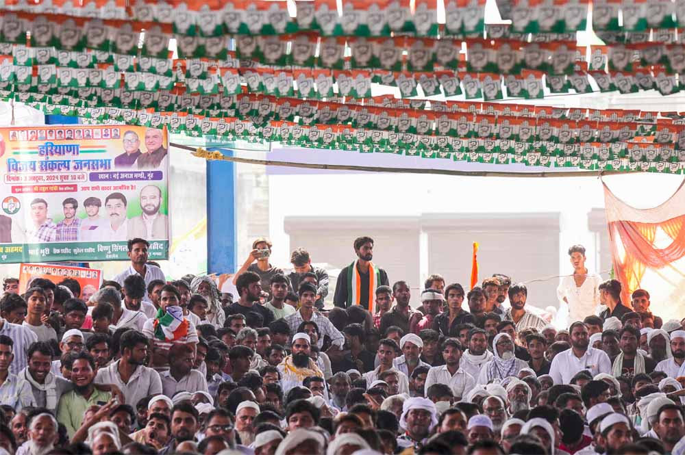 लोकसभा में नेता प्रतिपक्ष राहुल गांधी ने बृहस्पतिवार को हरियाणा की जनता से भारतीय जनता पार्टी (भाजपा) को सत्ता से उखाड़ फेंकने का आह्वान किया तथा कहा कि कांग्रेस धर्म, भाषा और जाति के आधार पर ‘‘भाजपा द्वारा फैलाई जा रही नफरत” को सफल नहीं होने देगी। गांधी नूंह में एक चुनावी सभा को संबोधित करते हुए भाजपा पर तीखे हमले किए और कहा कि आज मोहब्बत और नफरत के बीच लड़ाई है। पिछले साल नूंह में विश्व हिंदू परिषद के जुलूस पर भीड़ द्वारा हमला किए जाने के बाद हिंसा भड़क गई थी जिसमें दो होम गार्ड और एक मौलवी सहित छह लोगों की मौत हो गई थी। राहुल गांधी ने विधानसभा चुनाव के लिए प्रचार के आखिरी दिन आरोप लगाया कि कि कांग्रेस प्यार फैलाती है जबकि भाजपा नफरत फैलाती है। हरियाणा की सभी 90 विधानसभा सीट के लिए पांच अक्टूबर को मतदान होगा। मतणना आठ अक्टूबर को होगी।
