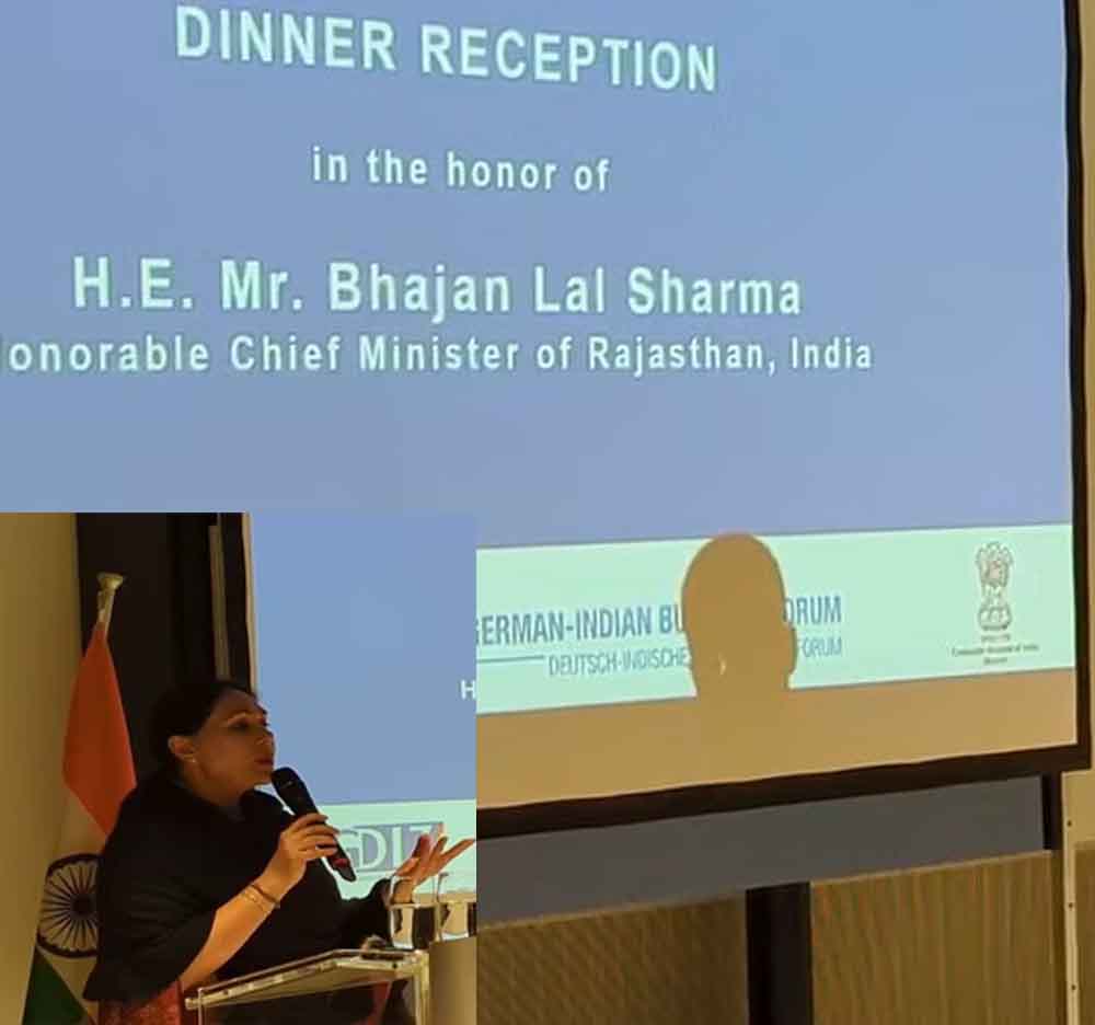 उपमुख्यमंत्री दीया कुमारी ने जर्मनी प्रवास के दौरान जर्मन-इंडियन बिज़नेस फोरम के तत्वावधान में म्यूनिख में बसे एनआरआर (नॉन-रेजिडेंट राजस्थानी) समुदाय से मुख्यमंत्री भजनलाल शर्मा के साथ मुलाकात की और उन्हें राजस्थान के विकास में सहयोग के लिए आमंत्रित किया और आगामी सम्मेलन भाग लेने के लिए प्रेरित किया। दीया कुमारी ने म्यूनिख में दिए अपने संबोधन में कहा कि यह गौरव का पल है, जब भारत पूरी दुनिया में अपना परचम लहरा रहा है और ऐसे समय में राजस्थान और राजस्थान की सरकार प्रवासी भारतीय और जर्मन के व्यापारियों को राजस्थान में निवेश करने के लिए न्योता देने आई है। उपमुख्यमंत्री ने कहा कि आज राजस्थान में निवेश कर हर व्यापारी भारत की बढ़ती हुई अर्थव्यवस्था का हिस्सा बन सकता है और पूरे विश्व में अपनी छाप छोड़ सकता है।