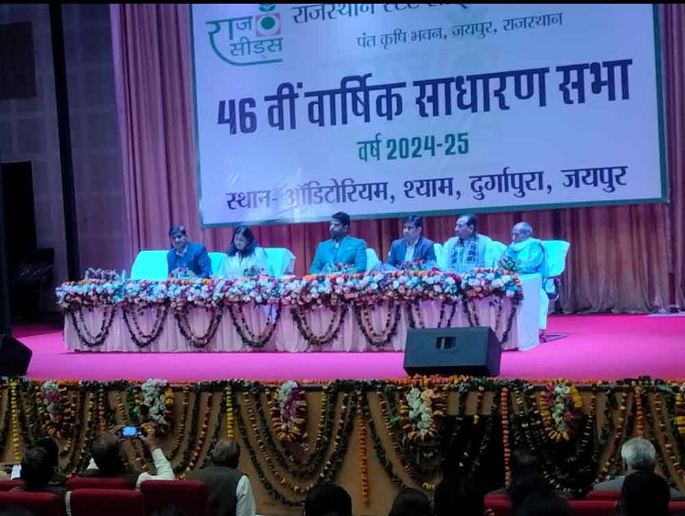 राजन विशाल की अध्यक्षता में सोमवार को दुर्गापुरा स्थित श्याम ऑडिटोरियम में राजस्थान स्टेट सीड्स कॉर्पोरेशन लिमिटेड की 46वीं वार्षिक साधारण सभा का आयोजन किया गया। जिसमें उन्होनें बताया कि किसानों को उच्च गुणवतायुक्त बीज उपलब्ध कराने हेतु वर्ष 2015 से खरीफ फसलों के प्रमाणित बीजों का जी.ओ.टी. परीक्षण करवाया जा रहा है। इस प्रक्रिया को निरन्तर रखते हुए, वर्ष 2020-21 से रबी फसलों के प्रमाणित बीजों का भी जी.ओ.टी. करवाया जा रहा है। जी.ओ.टी. परीक्षण करवाने से बीजों की आनुवांशिक गुणवता सुनिश्चित हो रही है। राजसीड्स देश की प्रथम संस्था है जो प्रमाणित बीज की जी.ओ.टी. कराकर ही किसानों को बीज उपलब्ध कराती है।