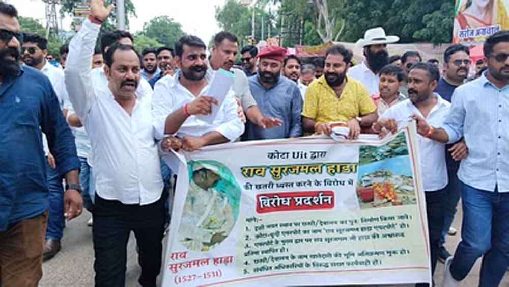 पूर्व राजा सूरजमल हाड़ा की प्राचीन 600 वर्ष पुरानी छतरी को केडीए के द्वारा ध्वस्त करने के मामले में राजपूत समाज से जुड़े लोगों ने धरना देकर कलेक्ट्रेट पर विरोध जताया। मामले को लेकर बूंदी पहुंचे श्री राजपूत करणी सेना के राष्ट्रीय अध्यक्ष महिपाल सिंह मकराना ने मामले को लेकर राजस्थान सरकार पर निशाना साधते हुए कहा कि जिस तरह असंवैधानिक तरीके से हमारे पूर्वजों की छतरी को तोड़ा गया है, राजपूत समाज का कोई भी व्यक्ति बर्दाश्त नहीं करेगा।