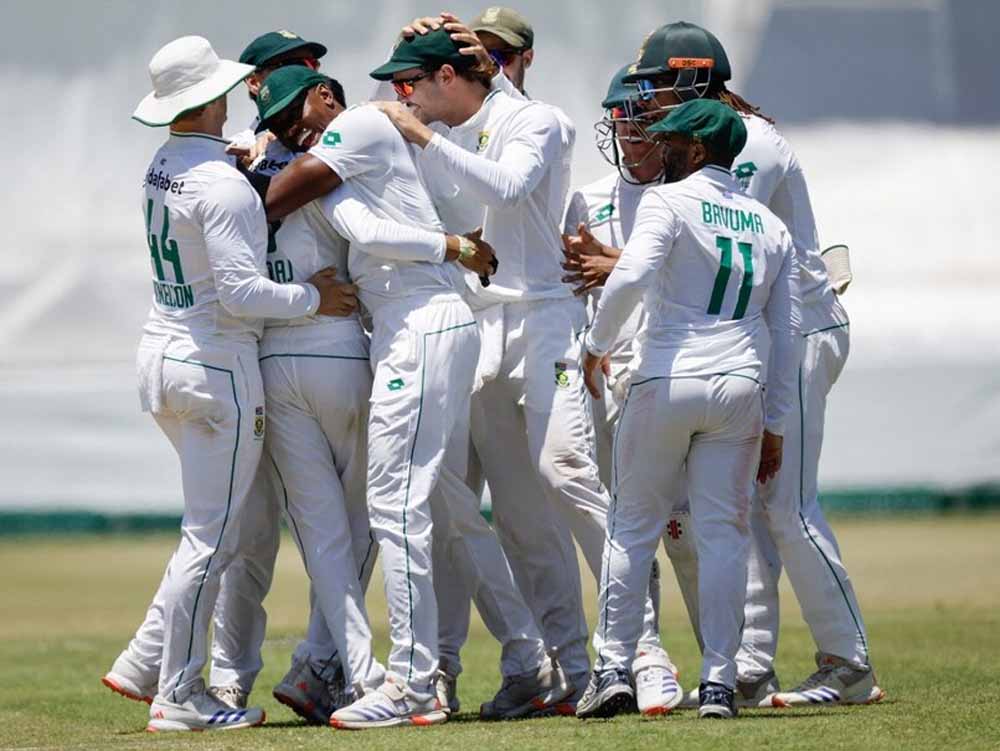 पहली पारी में बल्लेबाजी करने के बाद, प्रोटियाज ने संघर्ष किया। एक के बाद एक विकेट गिरने के बाद, कप्तान तेम्बा बावुमा की 70 रनों की पारी ने उनकी टीम को 191/10 तक पहुंचाया। पहली पारी में 200 रन के आंकड़े को पार न कर पाने के कारण प्रोटियाज गेंदबाजों ने दूसरे दिन भारी दबाव में मैदान संभाला और शानदार प्रदर्शन किया। मार्को जेनसन के शानदार 6.5 ओवर के स्पेल में बाएं हाथ के तेज गेंदबाज ने सात विकेट झटके। कैगिसो रबाडा (1) और गेराल्ड कोएट्जी (2) ने जेनसन की मदद की और मेहमान टीम को 42 रन पर समेट दिया, जिससे उन्हें 149 रन की बढ़त मिली।