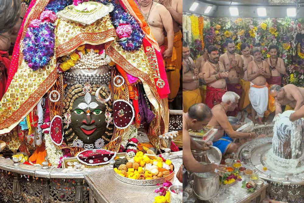 उज्जैन के महाकालेश्वर ज्योतिर्लिंग में नए साल का अनोखा जश्न मना। देश के कोने-कोने से श्रद्धालु आये। सुबह तीन बजे से ही भक्त महाकाल की भक्ति में लीन हो गए। नए साल की पहली सुबह बाबा महाकाल का पंचामृत अभिषेक हुआ। दूध, दही, घी, शक्कर और शहद से बाबा को नहलाया गया। चंदन का लेप लगाया गया। सुगंधित द्रव्य चढ़ाए गए। भांग से श्रृंगार किया गया। पंडितों ने मंत्रोच्चार किए। बाबा को श्वेत वस्त्र पहनाए गए। फिर भस्म रमाई गई। इसके बाद झांझ-मंजीरे, ढोल-नगाड़े और शंखनाद के साथ भस्मारती हुई।