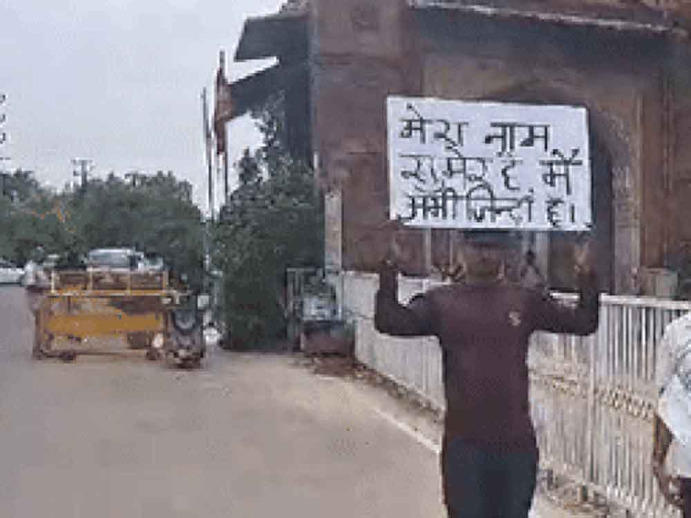 पीपाड़ सिटी नगर पालिका की लापरवाही का शिकार सुमेर सिंह अपने जीवित होने की तख्ती हाथ में लेकर प्रशासन से न्याय की उम्मीद में घूम रहा है। दरअसल युवक पीपाड़ सिटी, उचियादा बेरा का रहने वाला है और उसे अभी पता चला है कि वह नगर पालिका के डाक्यूमेंट्स में मृत घोषित कर दिया गया है।