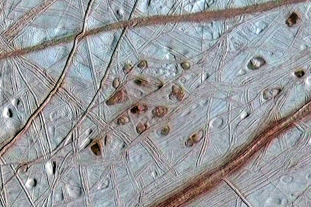 अमेरिकी अंतरिक्ष एजेंसी नासा NASA ने यूरोपा पर अंतरिक्ष के कचरों के टकराने से बने गड्ढे देखे हैं. यहां पर कई स्थानों पर प्राचीन गड्ढे, घाटियां, दरारें आदि हैं. यूरोपा पर इन सब चीजों के साथ काफी तीव्र रेडिएशन भी है. लेकिन इसकी ऊपरी ऊबड़-खाबड़ बर्फीली सतह के बीच कुछ गहरे रंग की आकृतियां भी दिखाई दीं है.