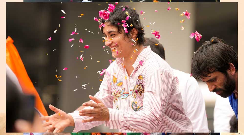 फोगाट परिवार के करीबी सूत्रों ने बताया, जैसे ही विनेश एयरपोर्ट से बाहर निकलीं। उनके प्रशंसकों, परिवार और दोस्तों ने उनका जोरदार स्वागत किया, जो सुबह के समय के बावजूद बड़ी संख्या में एकत्र हुए थे। जबरदस्त समर्थन और स्नेह ने कुश्ती आइकन को भावुक कर दिया। एयरपोर्ट के बाहर लोगों ने जश्न मनाया और उनकी भावनाएं चरम पर थीं। विनेश का स्वागत करने वालों में सबसे पहले साक्षी मलिक, जिन्होंने पिछले साल कुश्ती से संन्यास ले लिया था, और बजरंग पुनिया भी शामिल थे।