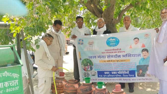 भिण्ड जिले के लहार न्यायालय परिसर में जल गंगा संवर्धन अभियान के अंतर्गत मध्यप्रदेश जन-अभियान परिषद द्वारा नवांकुर संस्था स्व. विद्या देवी लल्ला प्रसाद झा शिक्षा प्रसार समाज सेवा समिति द्वारा न्यायाधीश राकेश बंसल एडीजे लहार द्वारा भीषण गर्मी को देखते हुए मटके के ठंडे पानी की प्याऊ की व्यवस्था की गयी।
