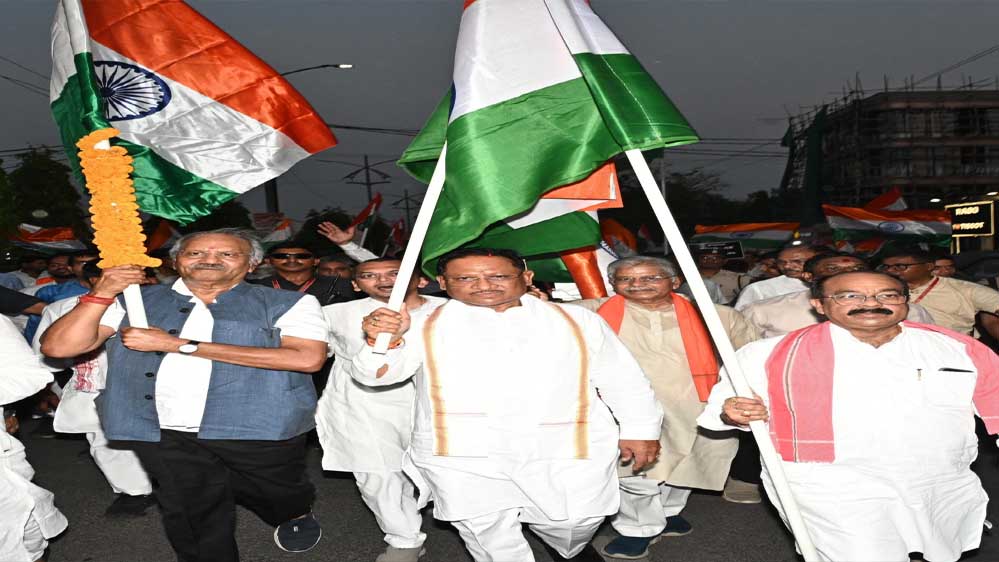 मुख्यमंत्री विष्णु देव साय आज राजधानी रायपुर में आयोजित तिरंगा यात्रा में शामिल हुए। उन्होंने कहा कि राष्ट्र की सुरक्षा की जब भी बात आएगी हम सभी एक हैं। देश के, अपने प्रधानमंत्री नरेंद्र मोदी और अपनी सेना के साथ हैं। उन्होंने कहा कि तिरंगा यात्रा में सभी वर्गों के लोग, सेवानिवृत्त सैनिक, समाज सेवी संगठन, आम नागरिक, महिला एवं पुरुष, बच्चों ने बड़ी संख्या में शामिल होकर एकजुटता, देशभक्ति, राष्ट्रीय गौरव का संदेश दिया है।