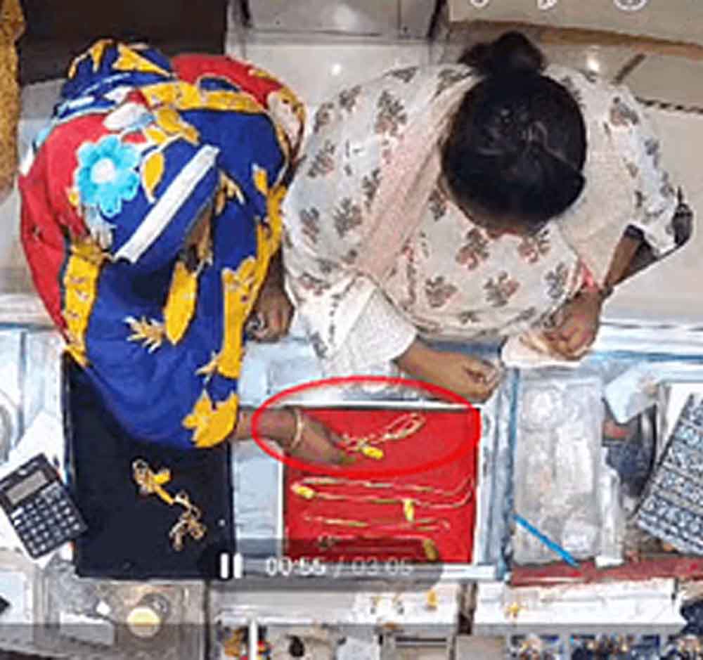 दरअसल अजीत होटल के पीछे तेलीपारा मे रहने वाले रवि सोनी का सदर बाजार में श्री माखन ज्वेलर्स नाम का दुकान है। 19 सितम्बर की शाम करीबन पौने आठ बजे दो अज्ञात महिलाएं खरीदारी के बहाने दुकान पहुंची और एक सोने की चैन जिसका वजन 11.210 मिली ग्राम 20 केरेट कीमत करीब 80,000 को चोरी कर फरार हो गई है। सीसीटीवी फूटेज चेक करने पर संचालक को दो महिलाओ के द्वारा घटना को अंजाम देने की बात सामने आई। जिसमें दो महिलाएं फुटेज में साफ नजर आ रही है जो ग्राहक बनकर समान देख रही है। फिलहाल, मामले की रिपोर्ट सिटी कोतवाली थाने पर की गई है। कोतवाली पुलिस अपराध पंजीबद्ध कर विवेचना में लिया है साथ ही फुटेज खंगाल महिला आरोपियों के तलाश की जा रही है।