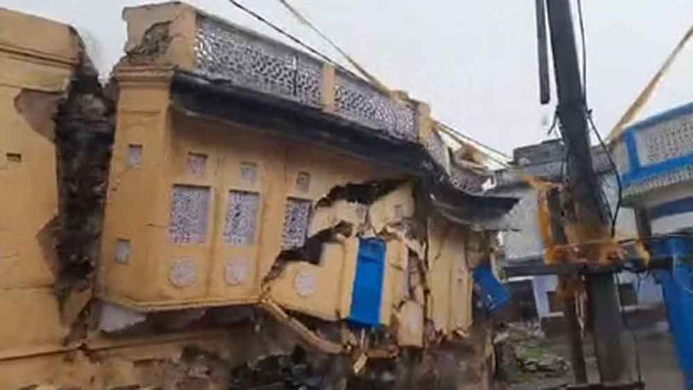ब्यावर जिले के मसूदा विधानसभा क्षेत्र में एक वर्षों पुरानी हवेली के गिरने का लाइव वीडियो सामने आया है। अजमेर संभाग में पिछले पांच दिनों से भारी बारिश के चलते अजमेर सहित आसपास के जिलों की कई कॉलोनियों मे जल भराव की स्थिति उत्पन्न हो गई है तो वहीं कई इलाकों माँ पुरानी इमारतें धराशायी हो चुकी हैं।